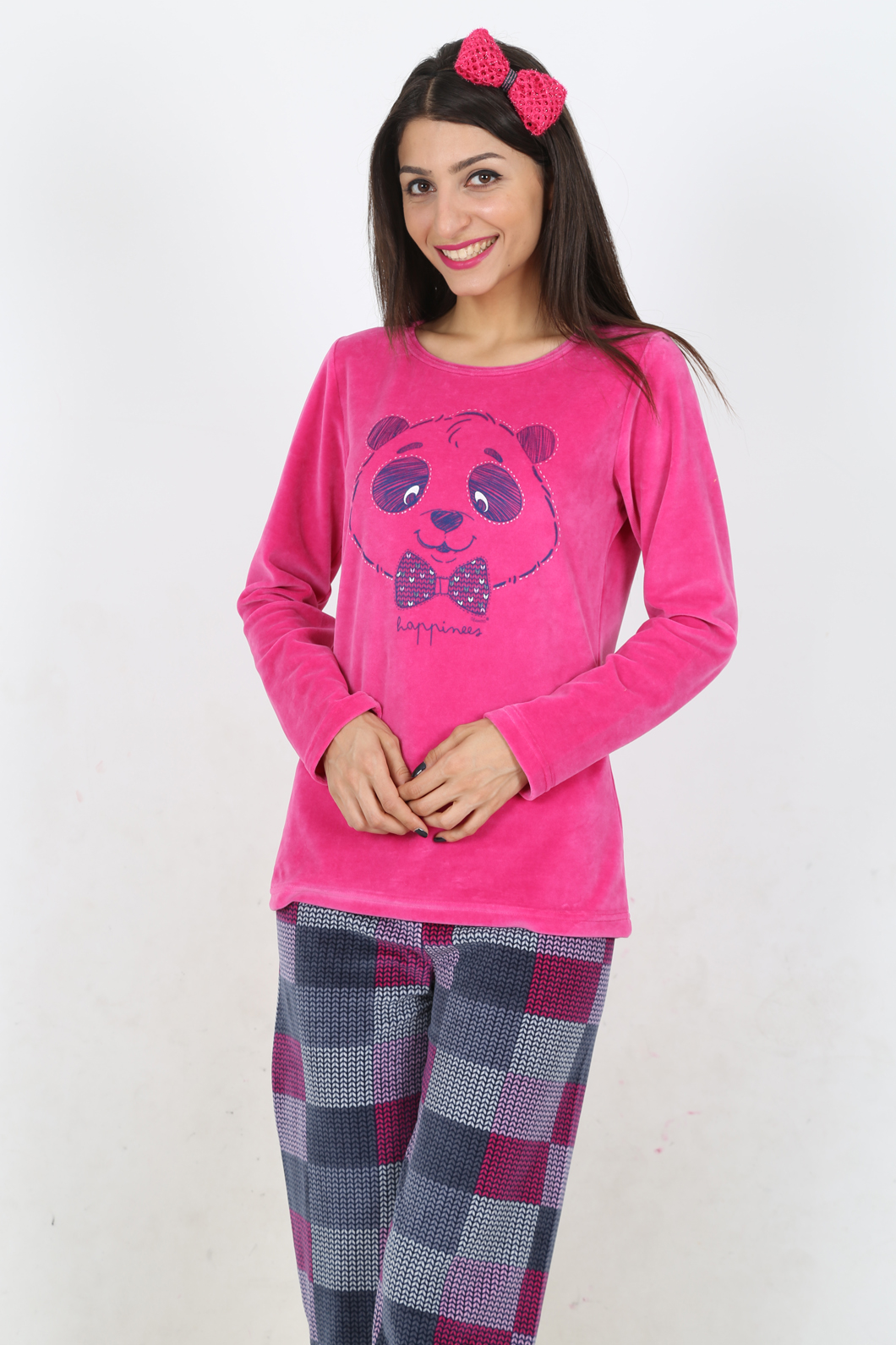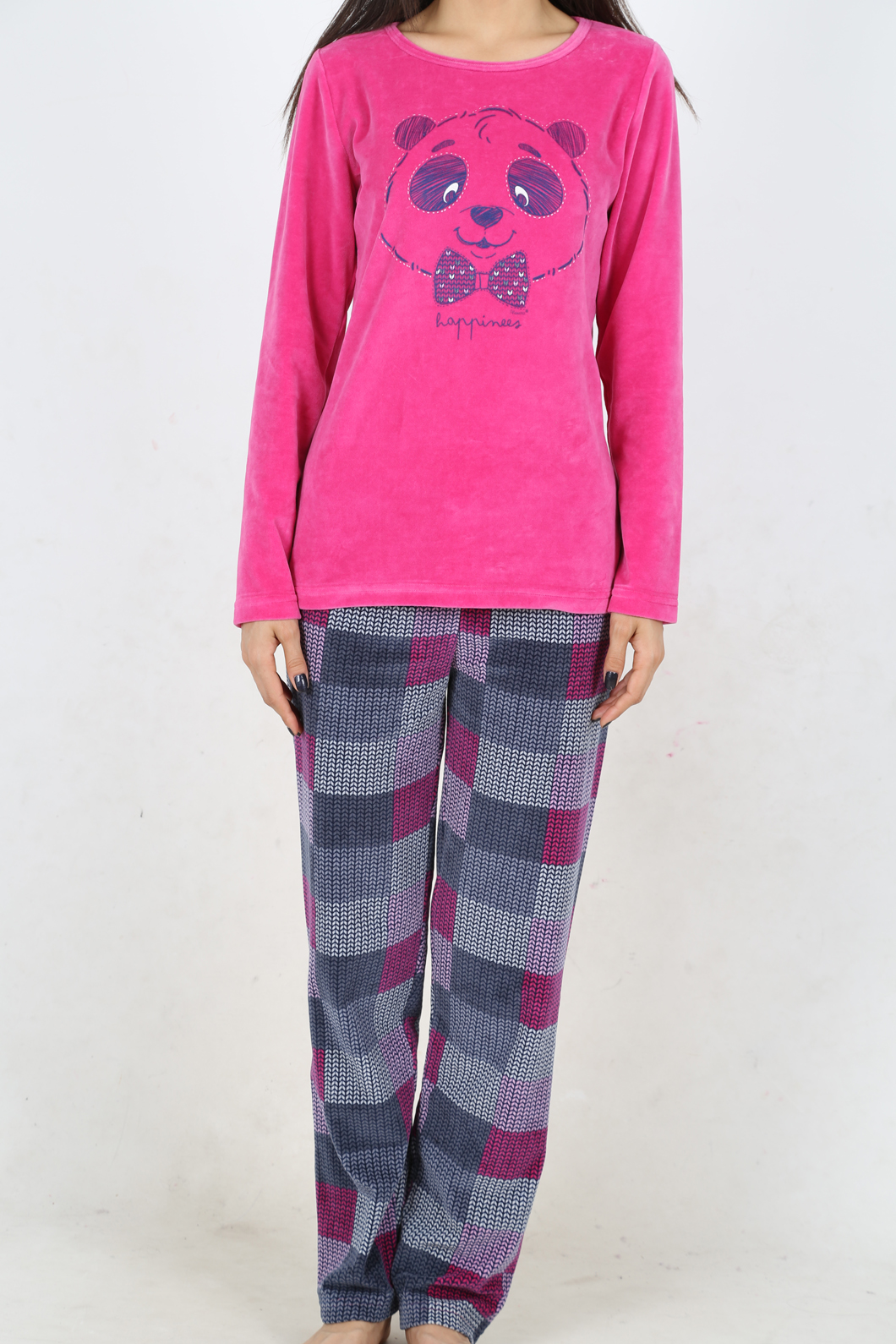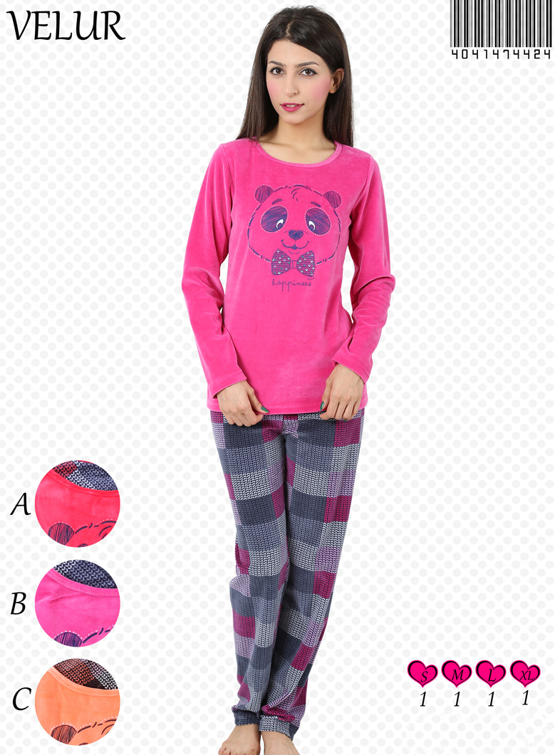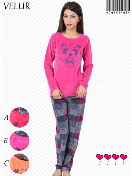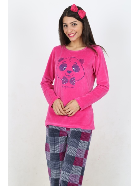 BAYAN KADİFE KAYIK YAKALI PİJAMA TAKIM - 4041474424