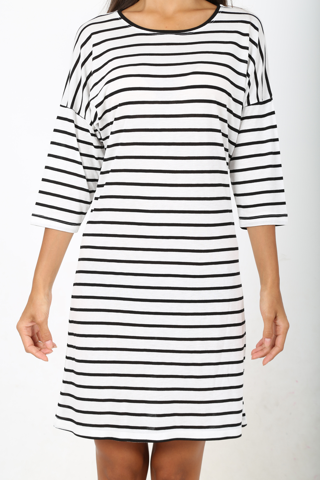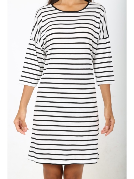 BAYAN CİZGİLİ VORTEKS KAYIK YAKA DUSUK OMUZLU 3/4 KOL TUNİK - 4070584570