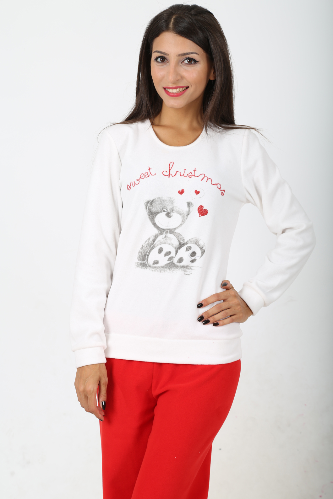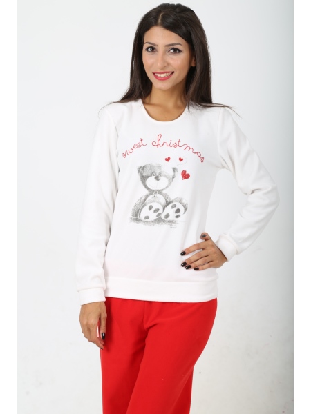 BAYAN POLAR MANSETLİ BİSİKLET YAKA ETEK KOL MANSETLİ PİJAMA TK. - 4080933116