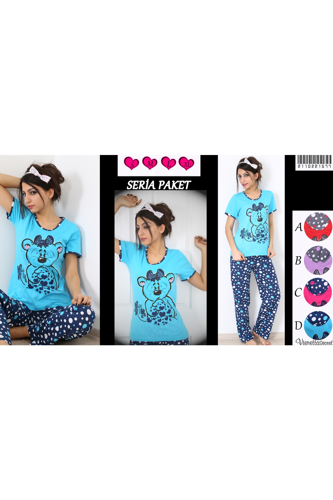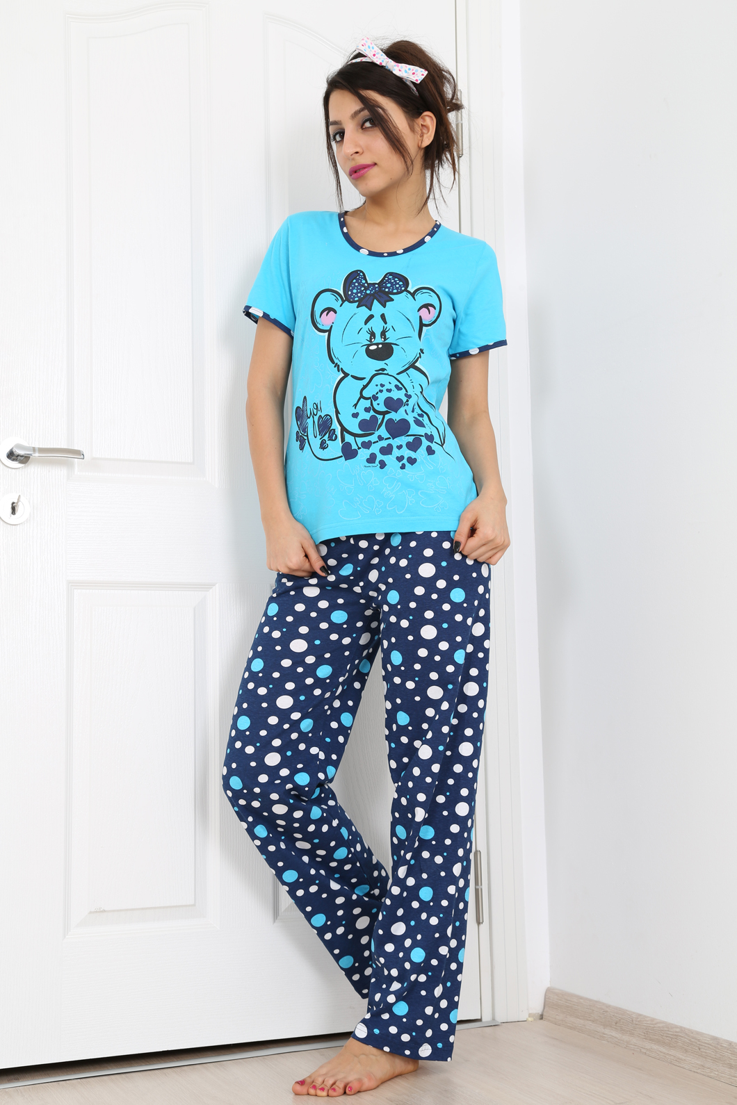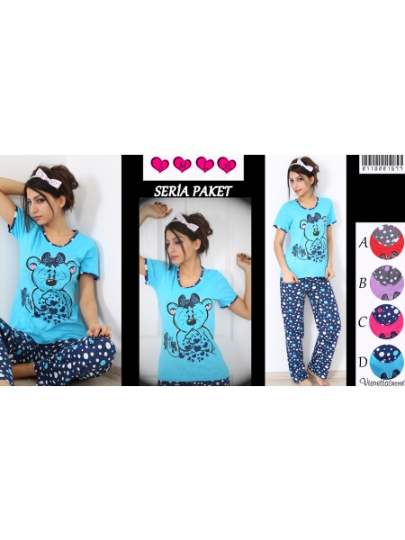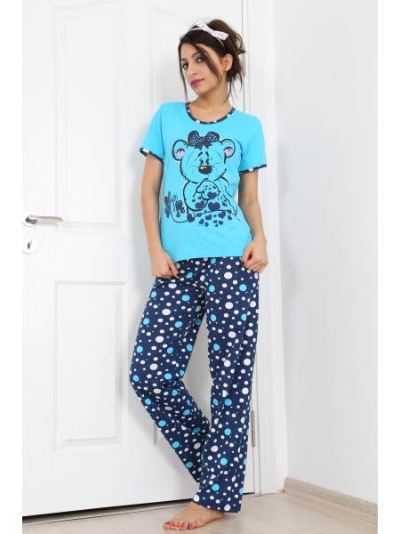 BAYAN SÜPREM TAKMA KOLLU KISA KOLLU UZUN PAÇALI PİJAMA TK - 2110221577