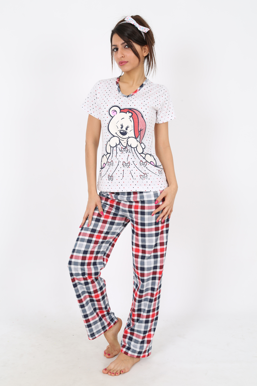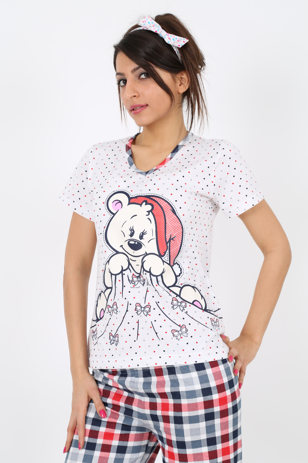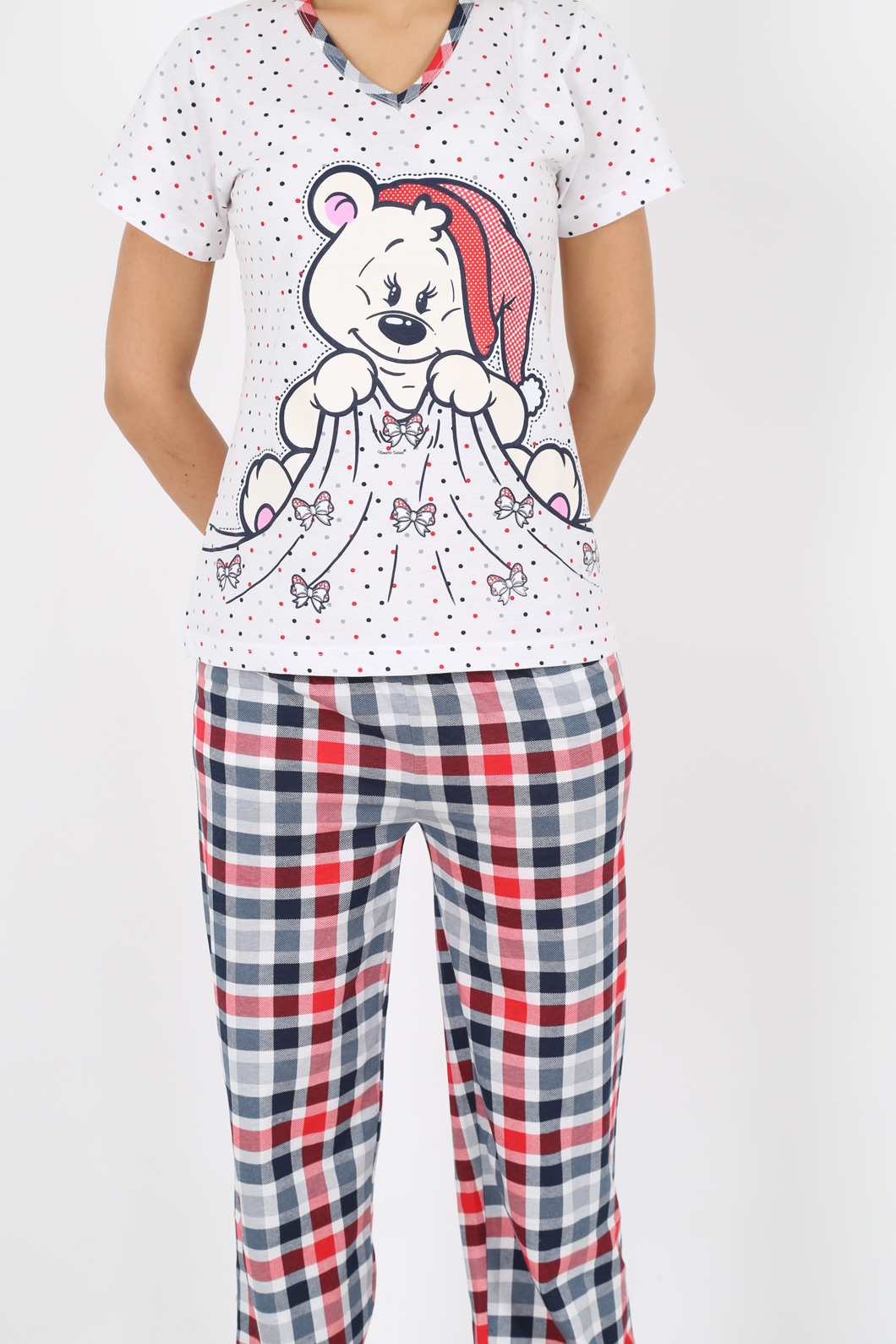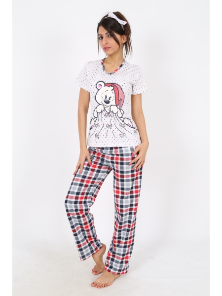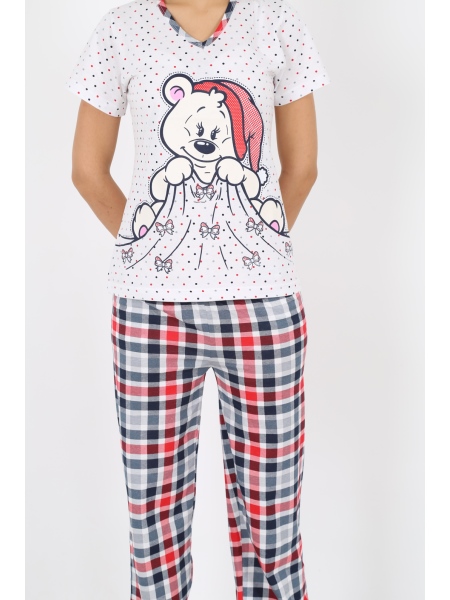 BAYAN SÜPREM AY PARÇALI V YAKALI KISA KOLU PİJAMA TK - 2100972473