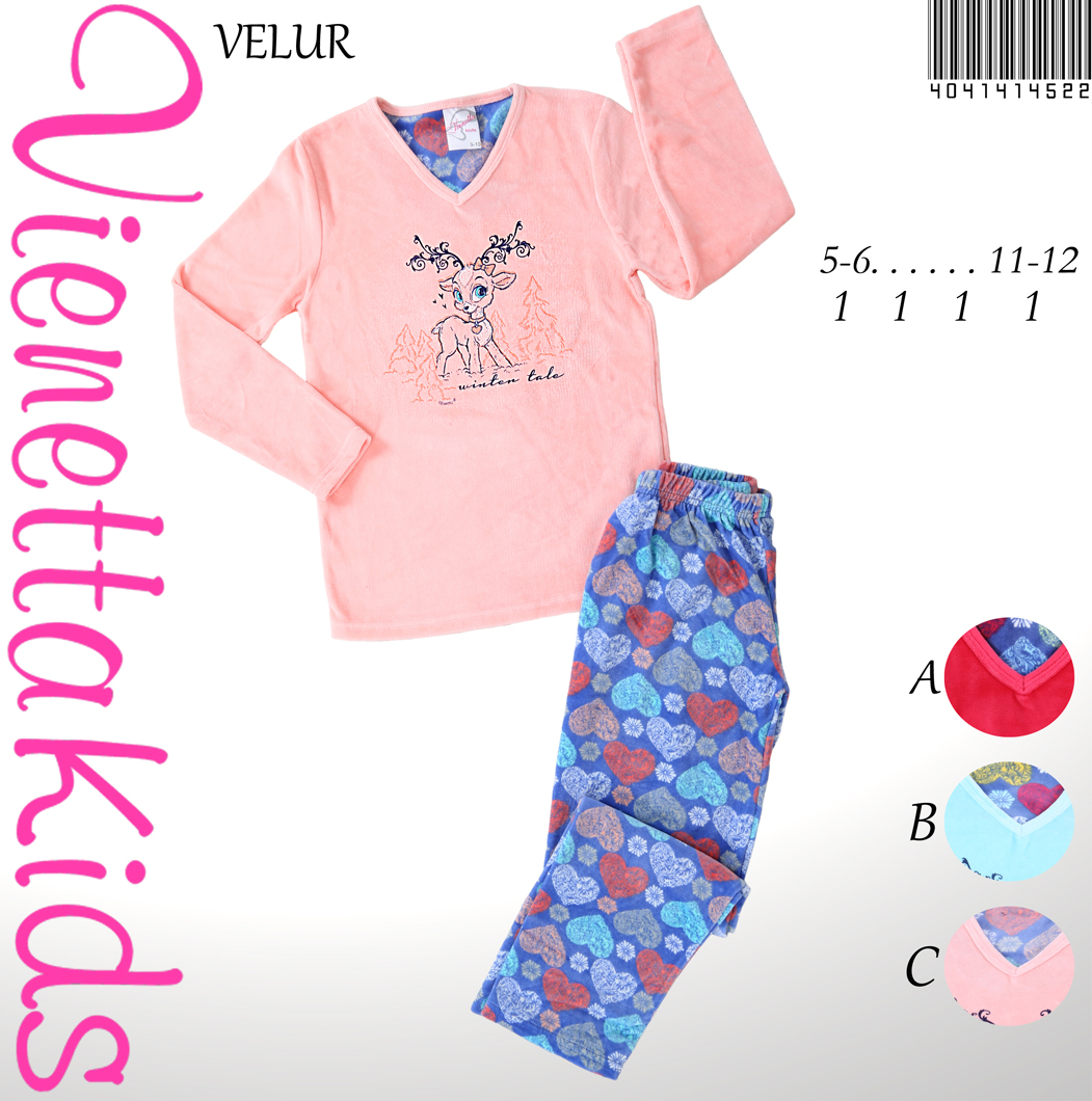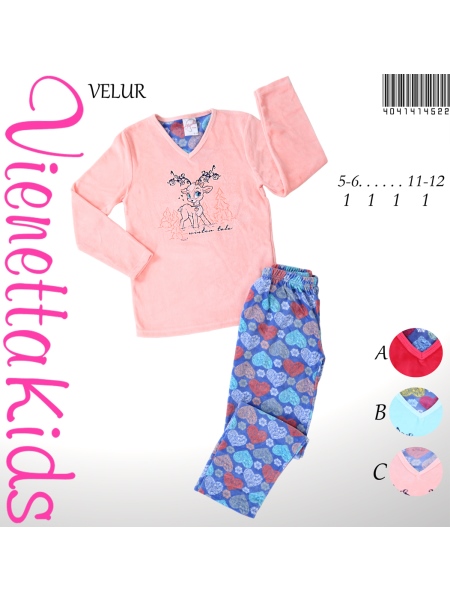 KIZ COCUK KADİFE V YAKALI PİJAMA TK. - 4041414522
