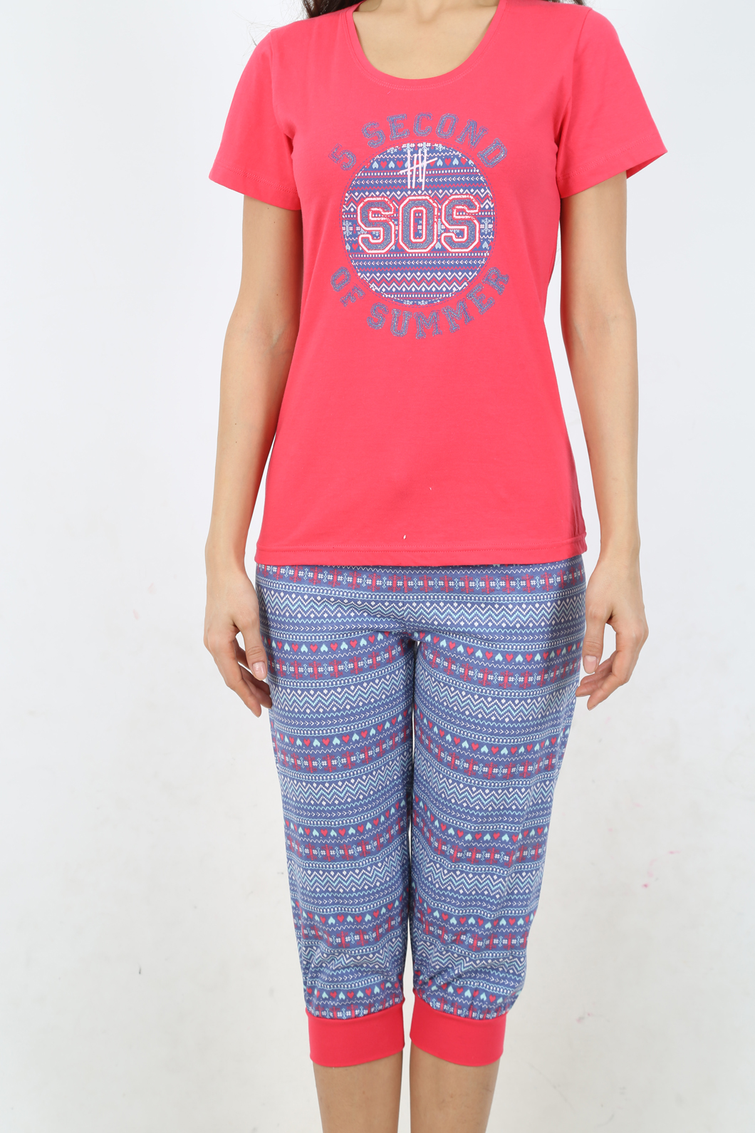 BAYAN PENYE SÜPREM DİBARİ O YAKA PAÇA MANŞETLİ KAPRİ TAKIM - 4081044030