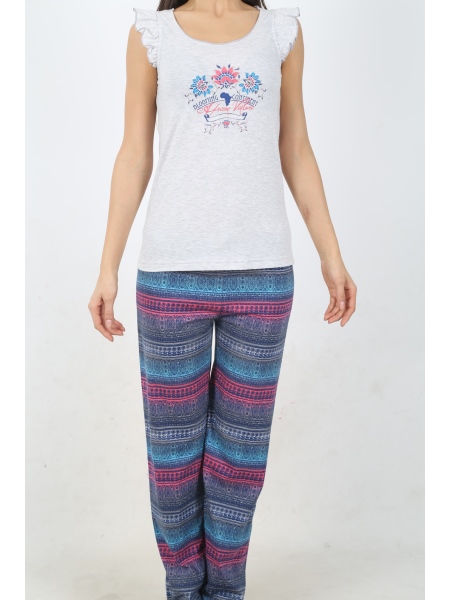 BAYAN P.SUPREM O YAKA KOLU FIRFIRLI PİJAMA TAKIM - 4091414660