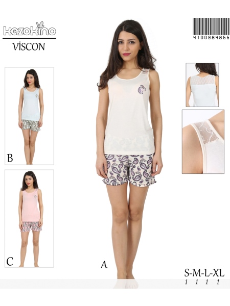 KEZ - BAYAN VISKON BISIKLET YAKA KALIN ASKILI ON ARKA ROBASI DANTELLI PACASI FIRFIR SORT TAKIM - 4100984855
