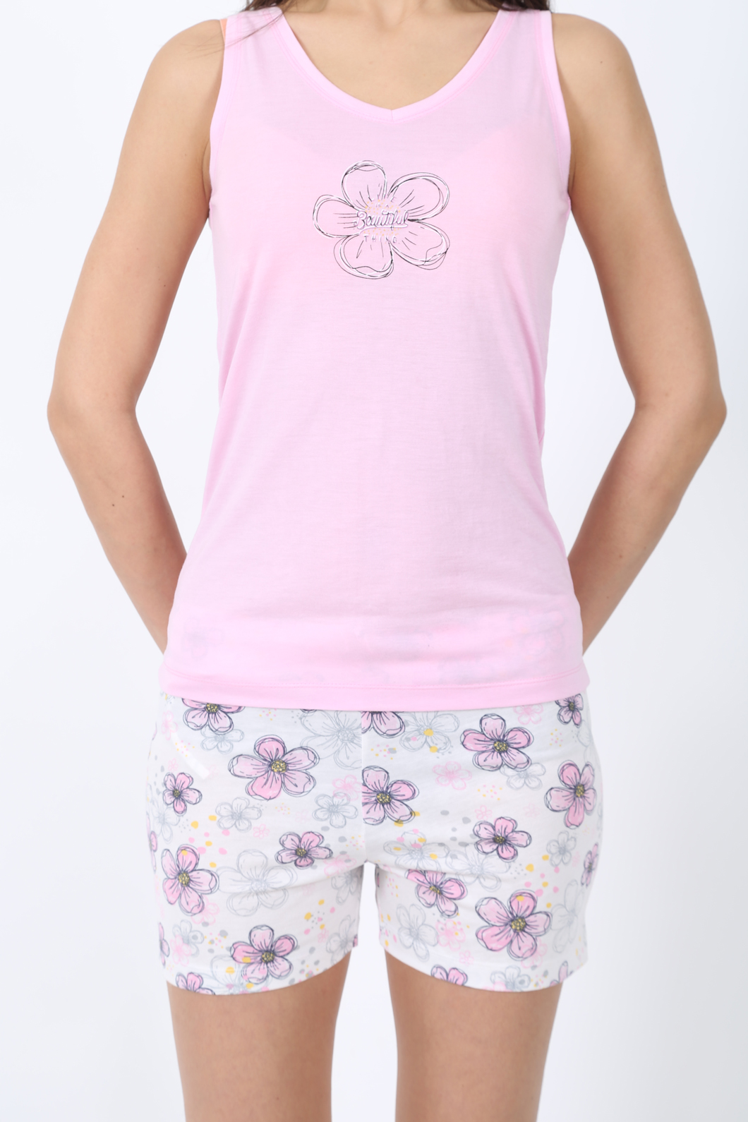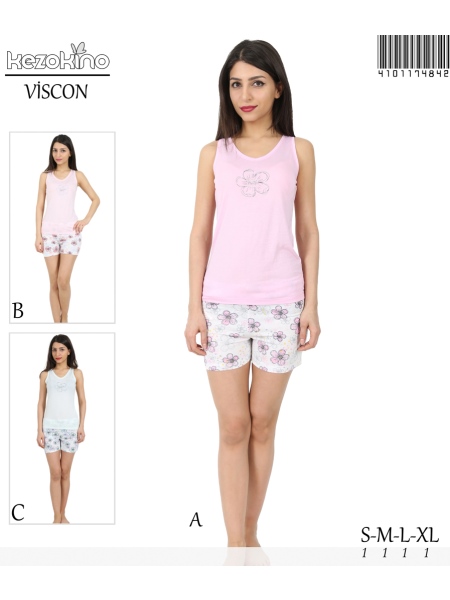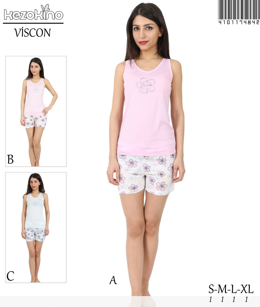 KEZ - KEZ BAYAN VİSKON V YAKA KOLSUZ YAKA KOL EVİ DİBARİ ŞORT TK - 4101174842