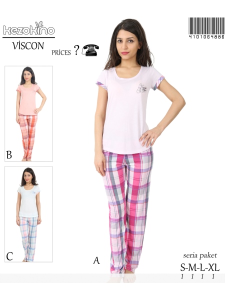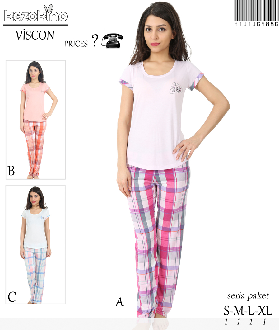 KEZ - BAYAN VISKON BISIKLET YAKA KEP KOL KOL AGZI KATLAMALI UZUN PACA PİJ. TK - 4101064886