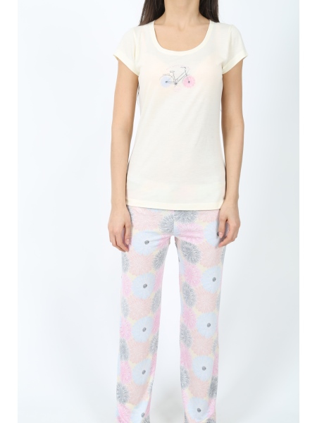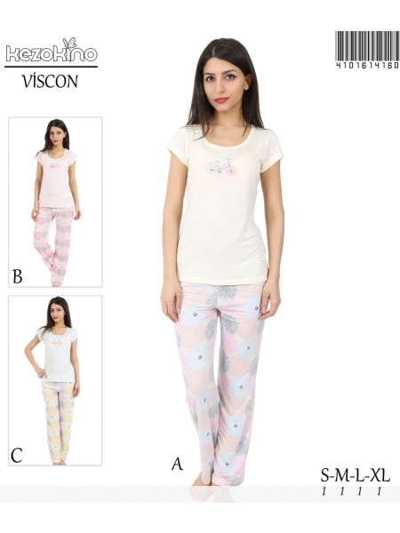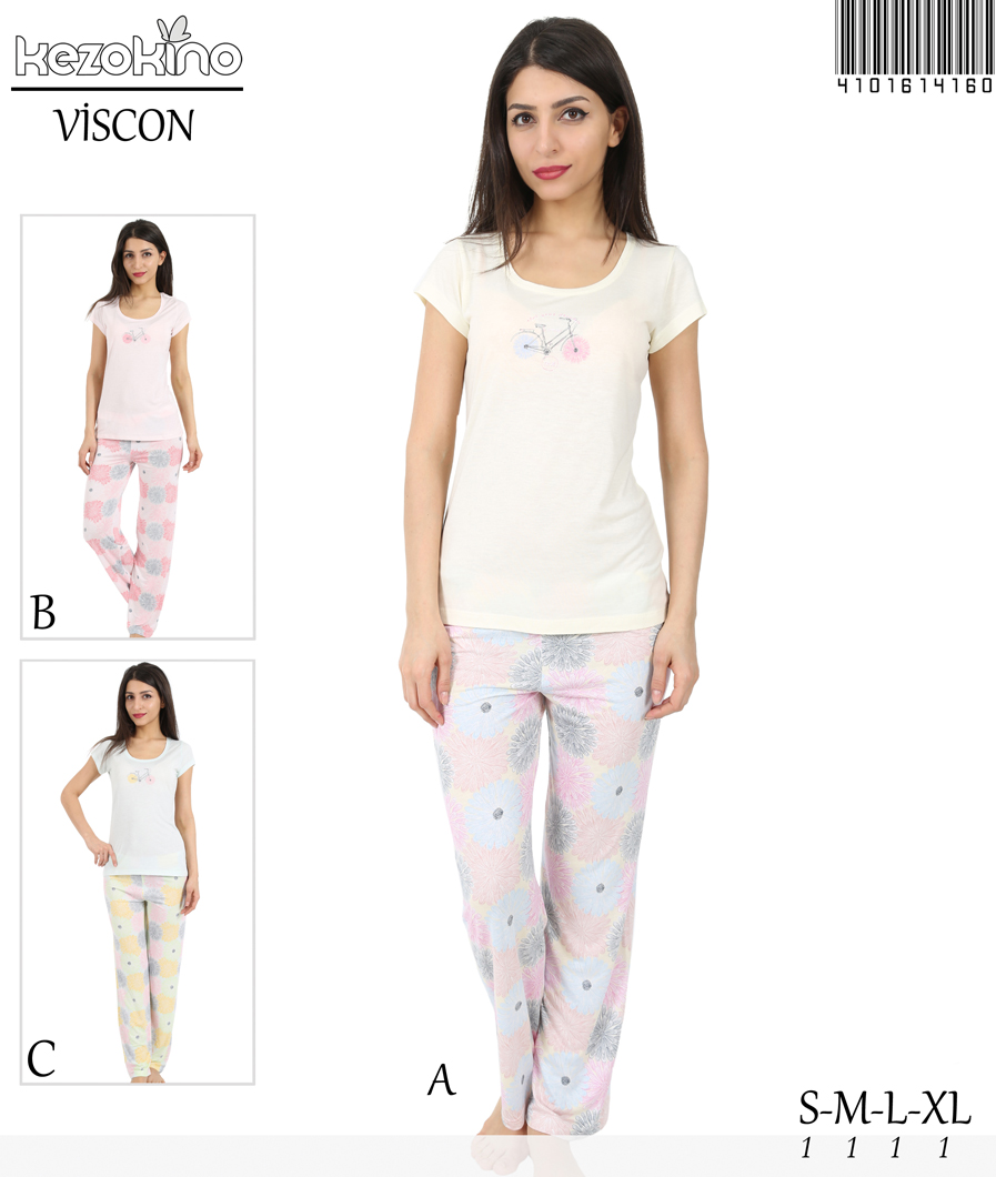 KEZ - BAYAN VİSKON BİSİKLET YAKA PİJAMA TAKIMI - 4101614160