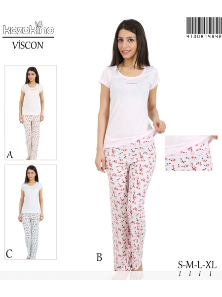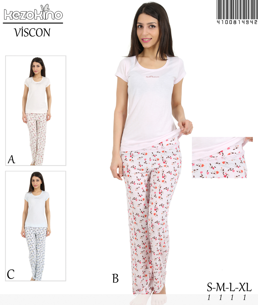 KEZ - BAYAN VISKON KOSA KOL BISIKLET YAKA TAKMA KEMER KEMERI DANTELLI PIJAMA - 4100814942