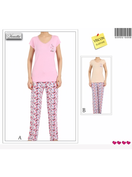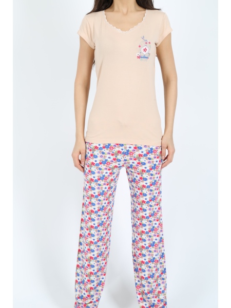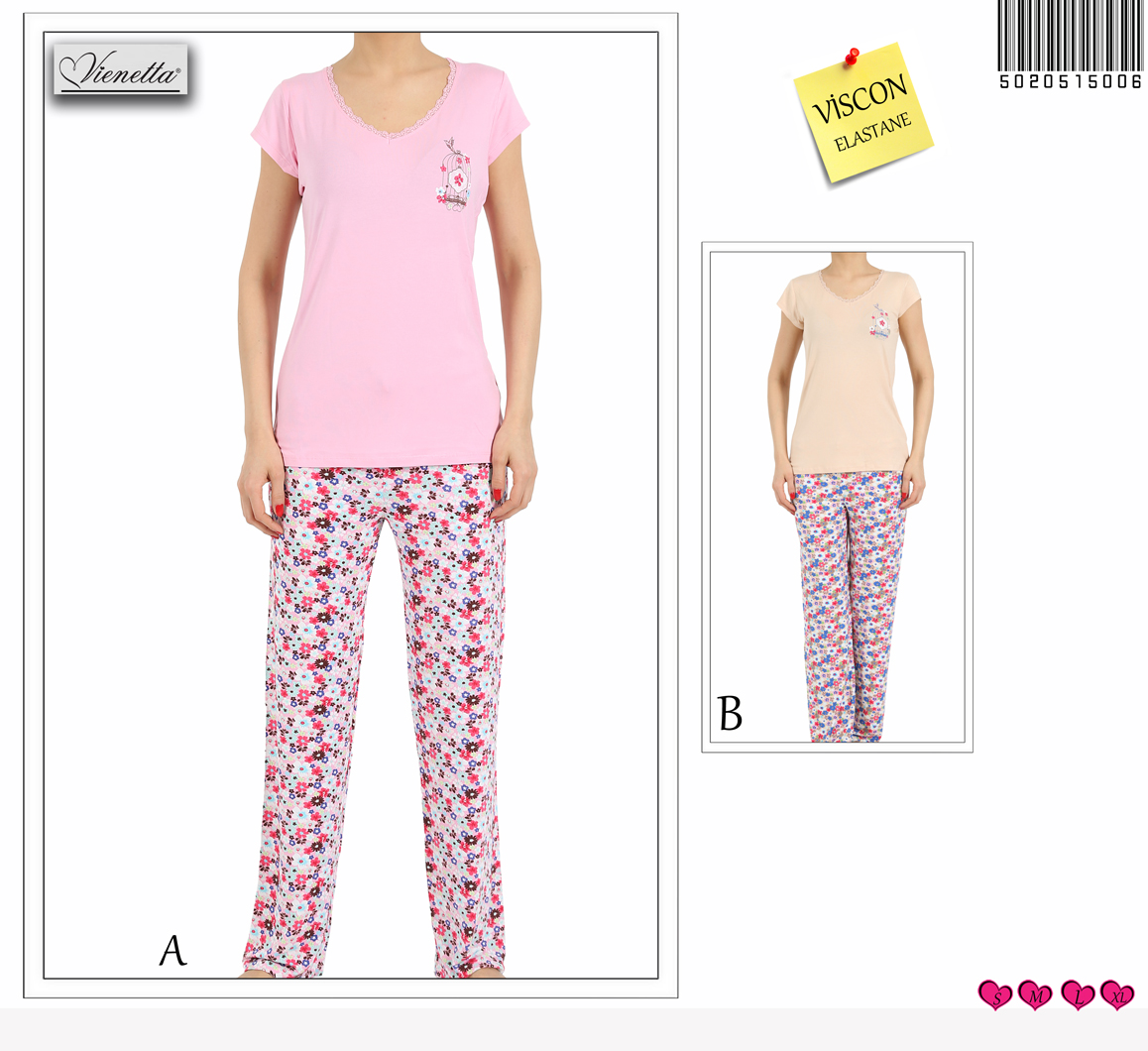 BAYAN VORTEKS FULL LIKRA BESGEN YAKA KEP KOL PIJAMA TAKIM - 5020515006