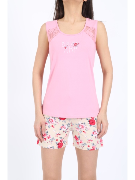 BAYAN VORTEKS BİSİKLET YAKA ROBASI DANTELLİ KOLSUZ ŞORT TK - 5020264623