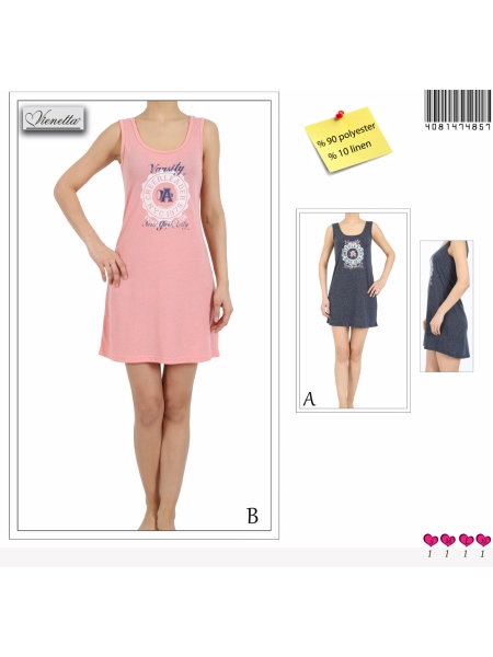 BAYAN KETEN SUPREM BISIKLET YAKA KOLSUZ ON KISA ARKA UZUN TUNIK - 4081474857