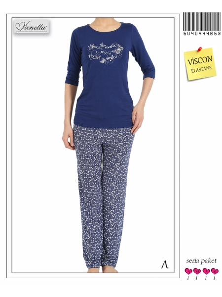 BAYAN VİSKON KAYIK YAKA 3/4 KOLL PİJAMA TK(4597 MODELİN ENSE TEMİZLEME BİYELİSİ ÇİFT BASKILI) - 5040444653