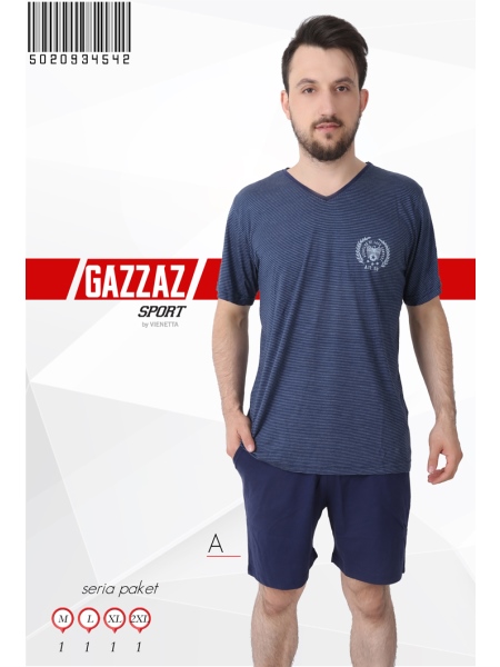 ERKEK PENYE SÜPREM DİBARİ V YAKA ŞORT TAKIM(4370 MODELİN ÜST ÇİZGİLİ ALT DÜZ OLANI ETEK VE KOL UCU - 5020934542