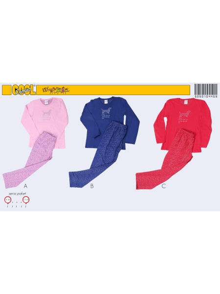 KIZ ÇOCUK P.SÜPREM O YAKA YAKASI DİBARİ TAKMA KOL PİJAMA TAKIMI (9/10--13/14 ÇİFT BASKI)(4434 MOD - 5050104459