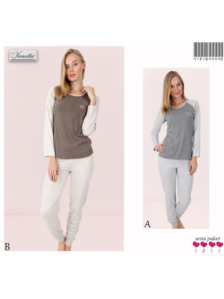 BAYAN REGLAN KOL PAÇASI MANŞETLİ PİJAMA TK SOL PACA VE GÖGÜS BASKILI(ÇİFT BASKILI) - 4121644440