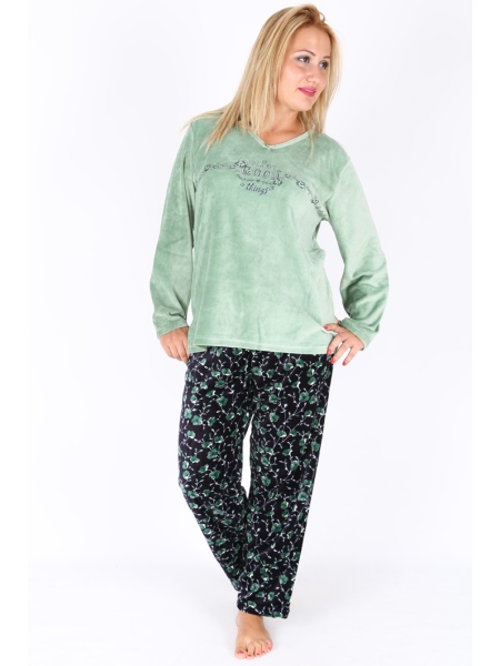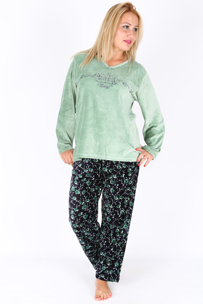 BAYAN KADİFE XL'Lİ V YAKA UZUN KOL PİJAMA TK - 5040955117
