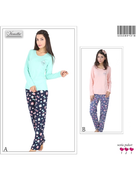 BAYAN PENYE SÜPREM O YAKA(YAKA DİBARİ) UZUN KOL PİJAMA TAKIMI - 5050894318