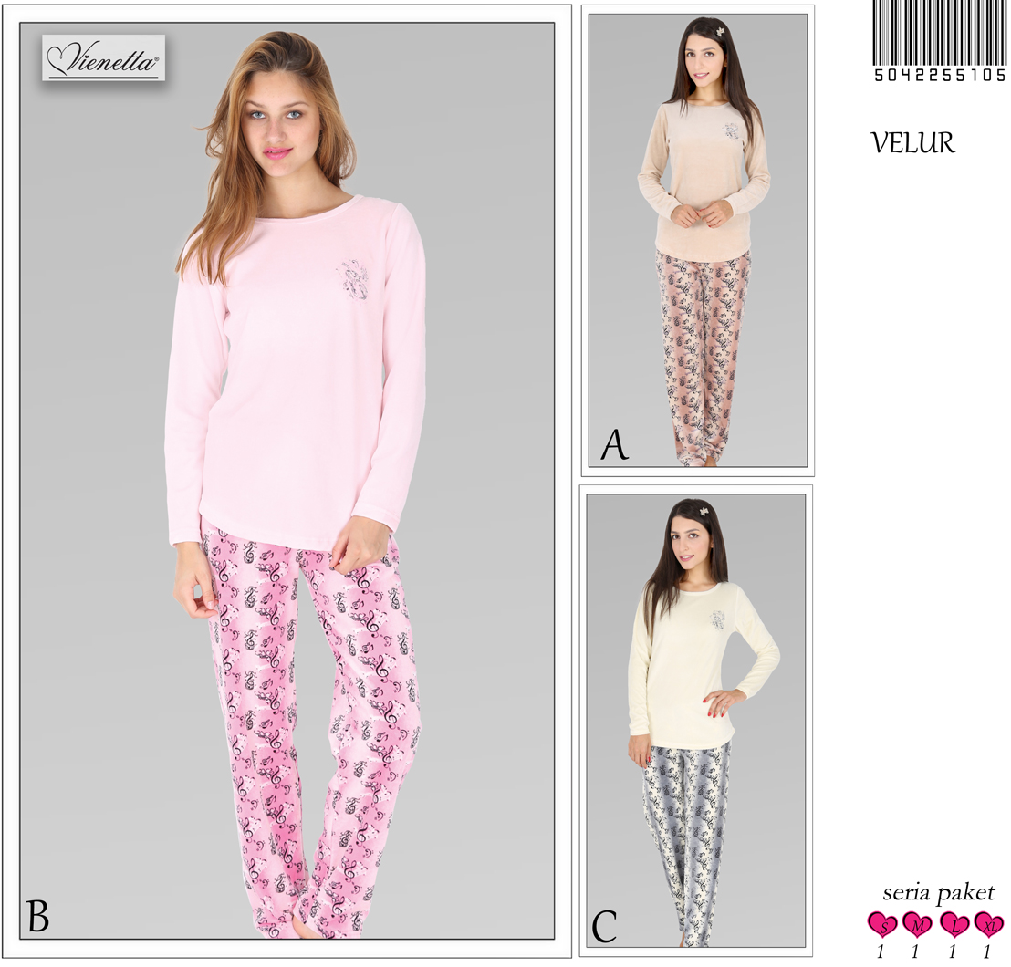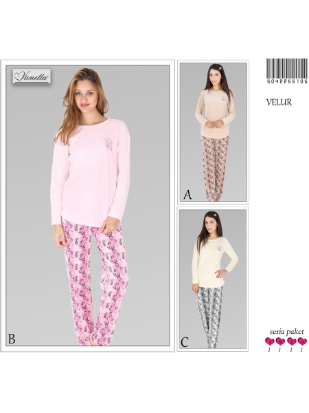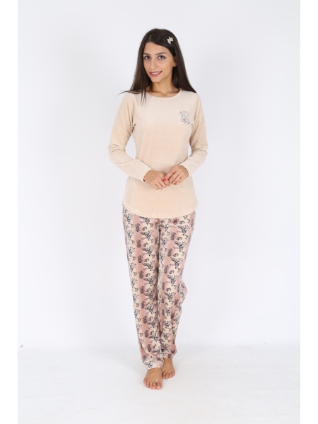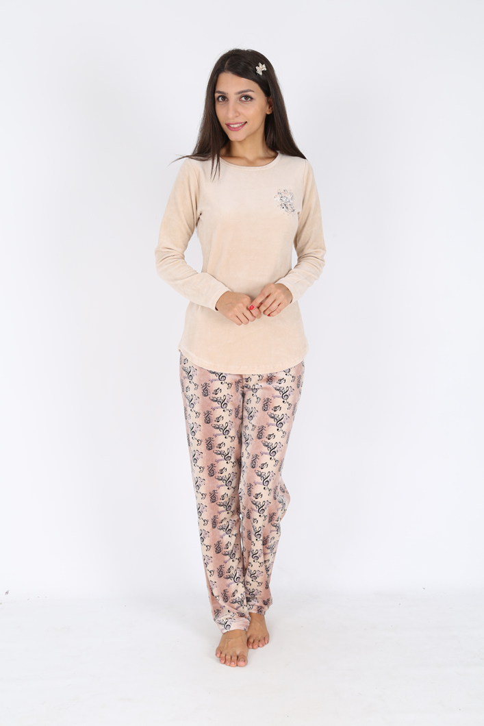 BAYAN KADİFE KAYIK YAKA KARYOKALI PİJAMA TK (ÇİFT BASKILI - 5042255105