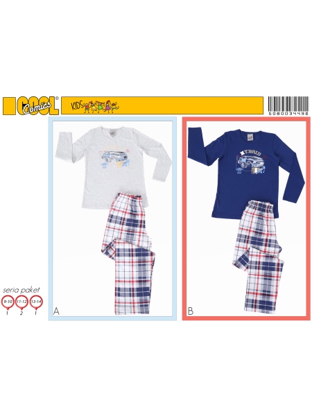 ERKEK ÇOCUK P.SÜPREM O YAKA YAKASI DİBARİ TAKMA KOL PİJAMA TAKIMI (9/10--13/14 --15/16 TÇİFT BASK - 5080034496