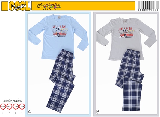 ERKEK ÇOCUK P.SÜPREM O YAKA YAKASI DİBARİ TAKMA KOL PIJAMA TAKIMI (9/10--13/14 --15/16 TÇİFT BASK - 5080074496