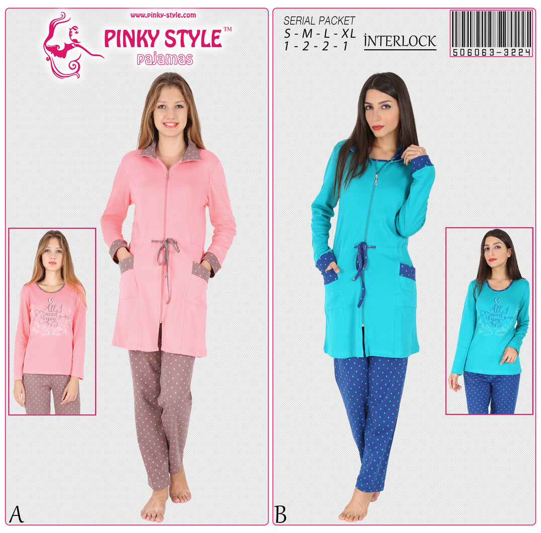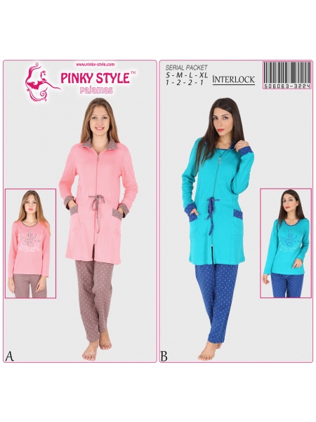 PINKY - BAYAN INTERLOK BISIKLET YAKA PIJAMA TAKIM HAKIM YAKA BELI TUNELLI FERMUARLI 3LU SABAHLIK TAK - 5060633224