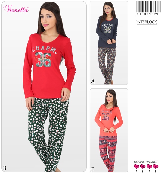 BAYAN INTERLOK BISIKLET YAKA UZUN KOL DAR PACA PIJAMA TAKI - 5100043249