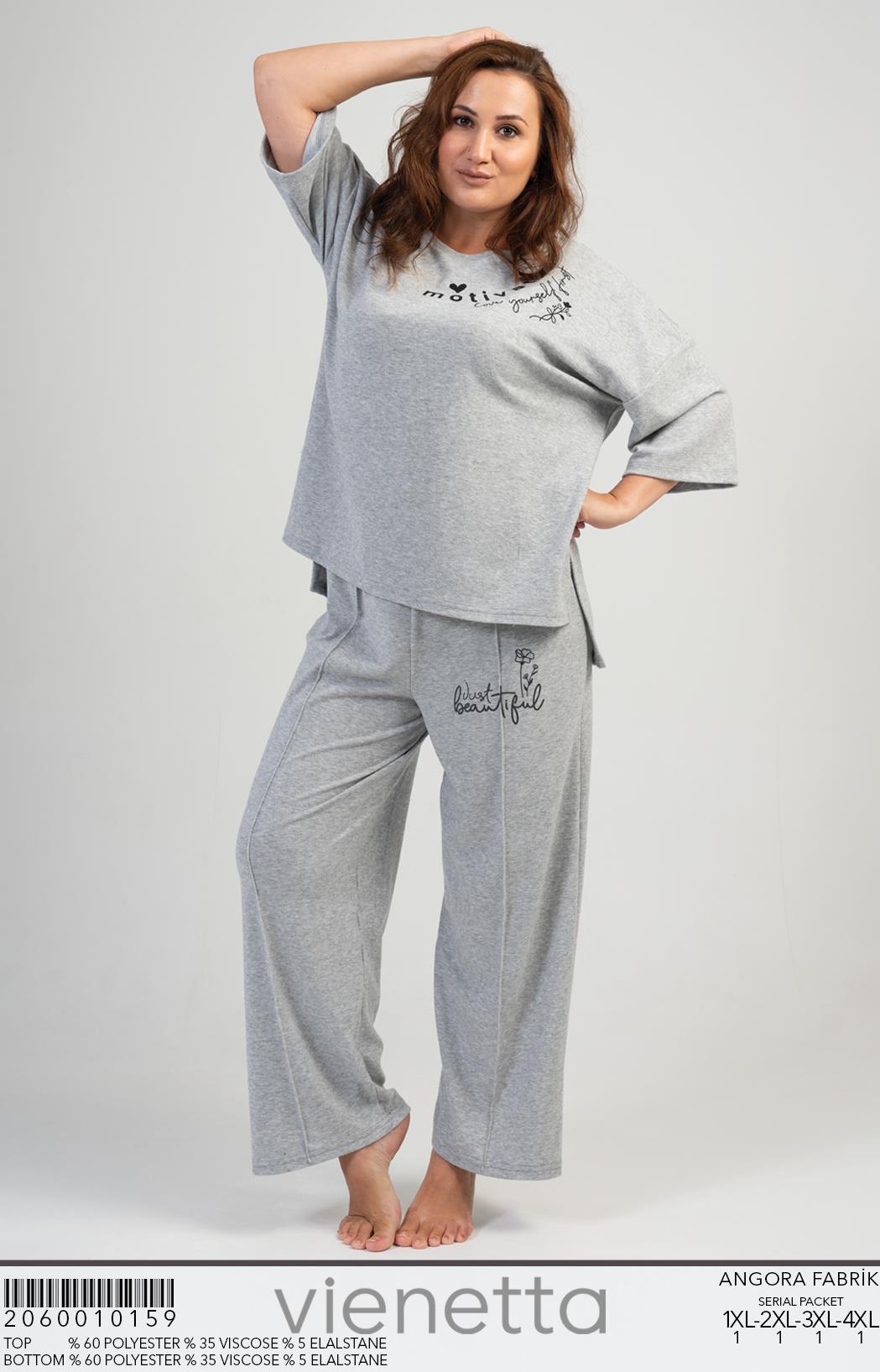 BAYAN LYC WORTEKS XXL O YAKA DUSUK OMUZLU KISA KOL ONU KISA ARKASI UZUN CEPLI PIJAMA TAKIM |