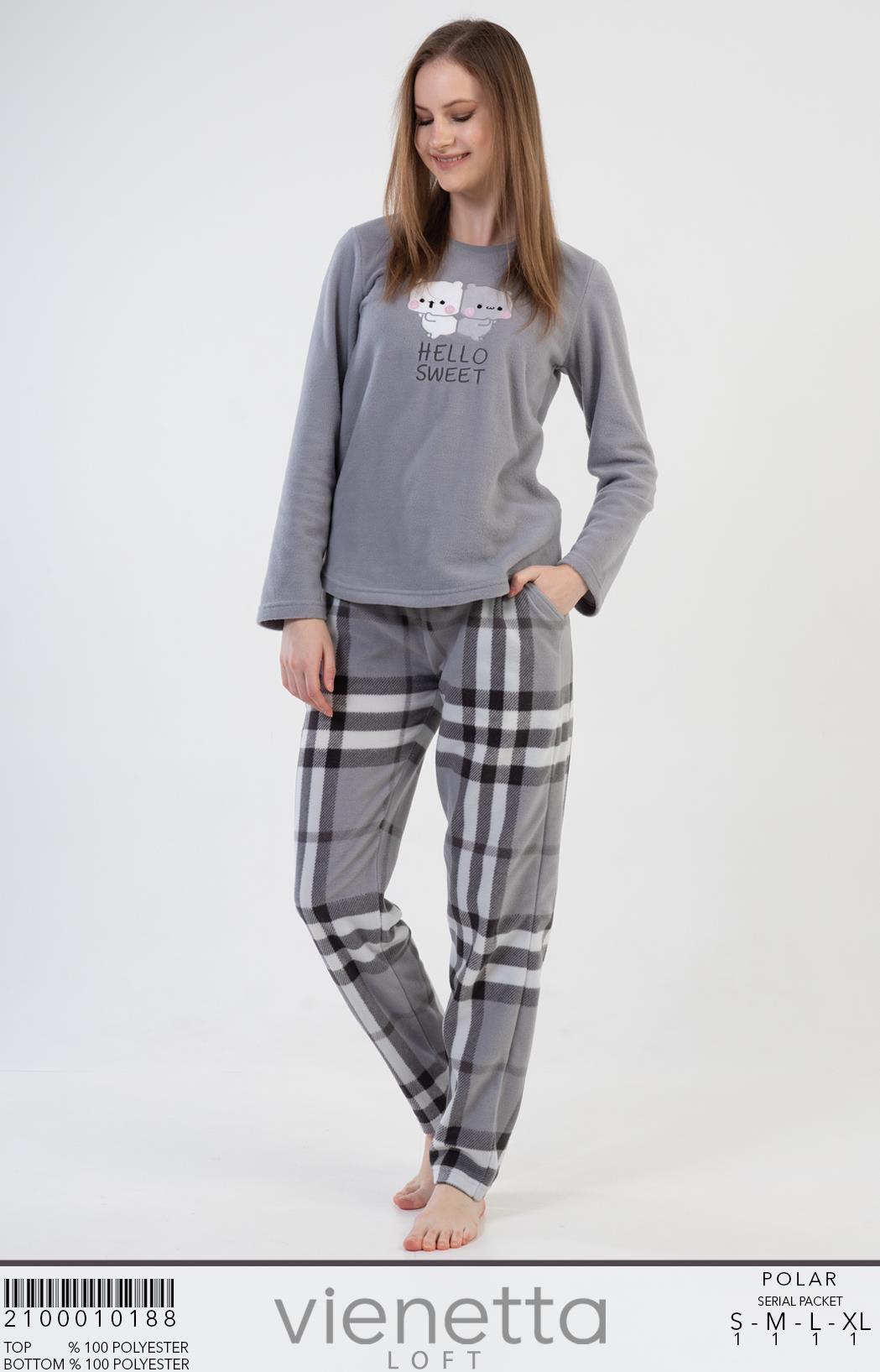 KADIN POLAR O YAKA UZUN KOL ETEGI OVAL CEPLI PIJAMA TAKIM |
