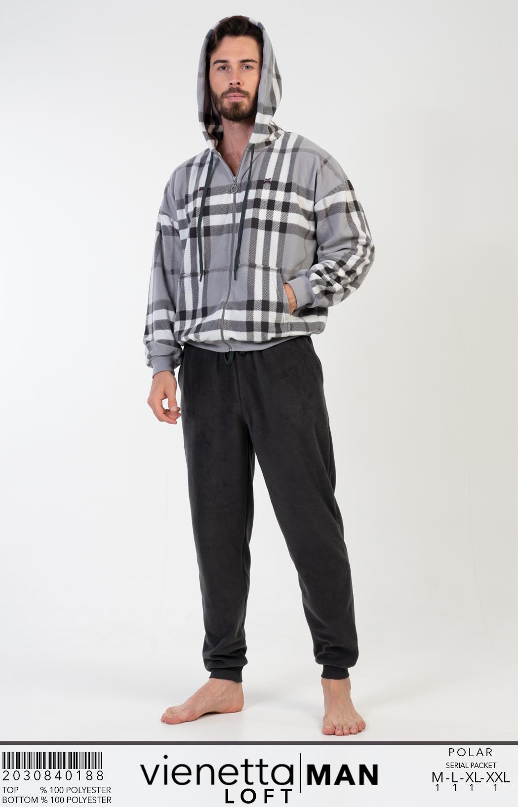 ERKEK POLAR KAPSONLU DUSUK OMUZLU UZUN KOL FERMUARLI KANGURU CEPLI MANSETLI PIJAMA TAKIM |